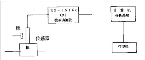 ①凿除混凝土桩顶灌浆部分,使桩顶露出新鲜表面。为减少杂波干扰,表面必须平整干净,露出的钢筋不得大摇晃;②传感器应稳定地粘在桩顶,并进行敲击试验;③现场应及时研究各桩试验曲线的异常波形,排除影响试验的不良因素后再重复试验;④测试方框图如下: